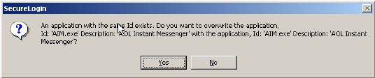 If a predefined applications and application definition currently exists in the receiving object, a confirmation message is displayed to confirm or reject overwrite with the imported data.