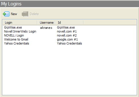 The My Logins pane in the Personal Management Utility pane