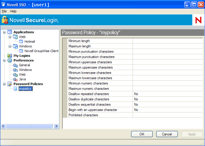NOTE:You can configure password policies in the Password Policy Properties Table of the Administrative Management Utility, the SSO plug-in of the iManager, or Group Policy snap-ins