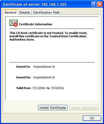 To get details about the certificate, click to display the Certificate Information dialog box shown in the above figure. If you decide that the certificate is valid, you can click to permanently install the certificate.