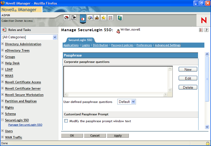 NOTE:The next time the user logs on, the user will be asked to set up the passphrase question and response you configured and re-enter the credentials for each single sign-on-enabled application.