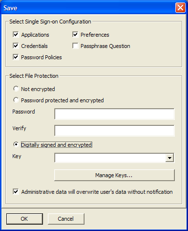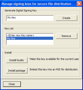 Click Manage Keys. The Manage signing keys for secure file distribution dialog box is displayed.