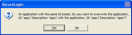 Click if you are sure that the imported application definition is preferred over the application definition currently stored in the user cache.