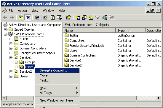 On a workstation or server open Active Directory User and Computers, and browse to the OU where you would like to create the group that will hold the Help Desk users who will work with SecureLogin for the selected container and its children.
