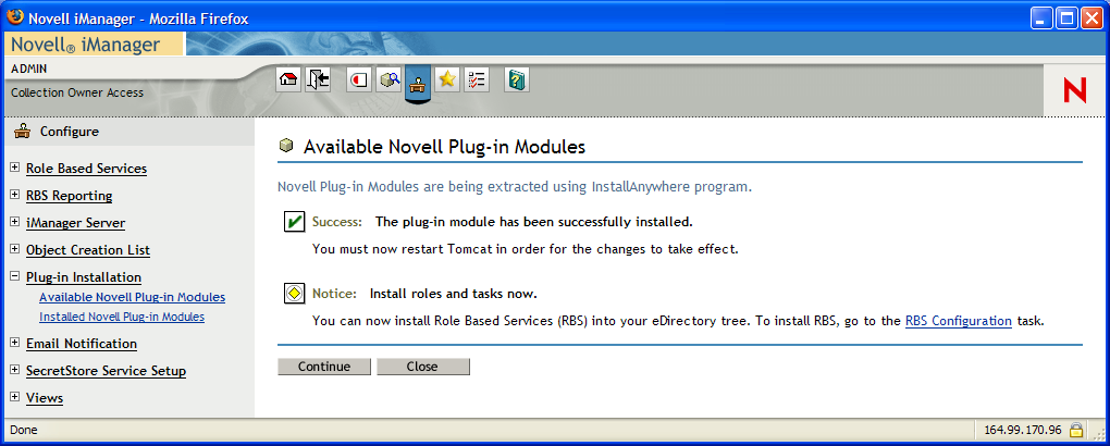 For more information on installation and Role Based Server (RBS) configuration, visit the Novell Documentation Web page