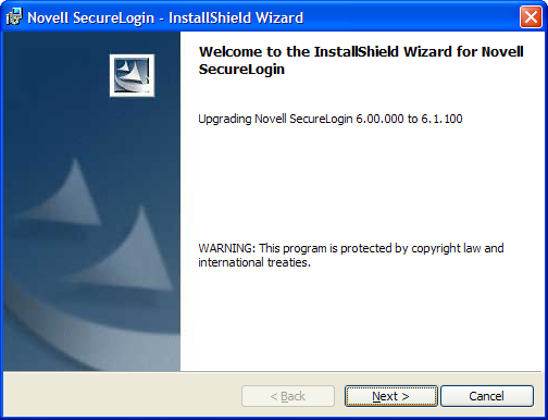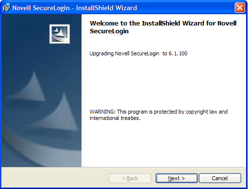 Run Novell SecureLogin.msi found in the \securelogin\client directory on the Novell SecureLogin 6.1 installer package.