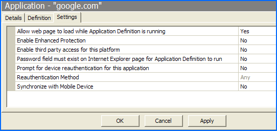 Figure 4-9 The Definition Tab in SecureLogin Manager