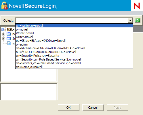 From the drop-down list, select the object or specify the full distinguished name (DN) of the user object, container, or the organizational unit for administration.