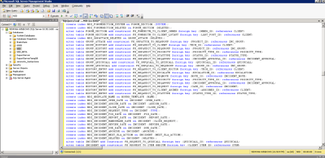 When you use a browser to connect to Micro Focus Service Desk for the first time after it is installed, you are prompted to choose the desired database type and are also provided with a script to create the database schema.