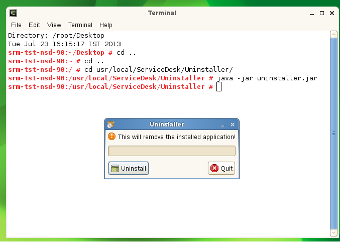 For SLES: /usr/local/ServiceDesk/Uninstaller