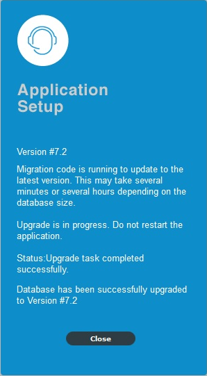 When the migration is complete, click Close. This will automatically save the upgrade task.