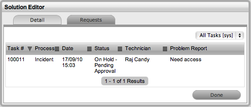 Created within an Incident or Problem, to provide a possible workaround for a specific request. |