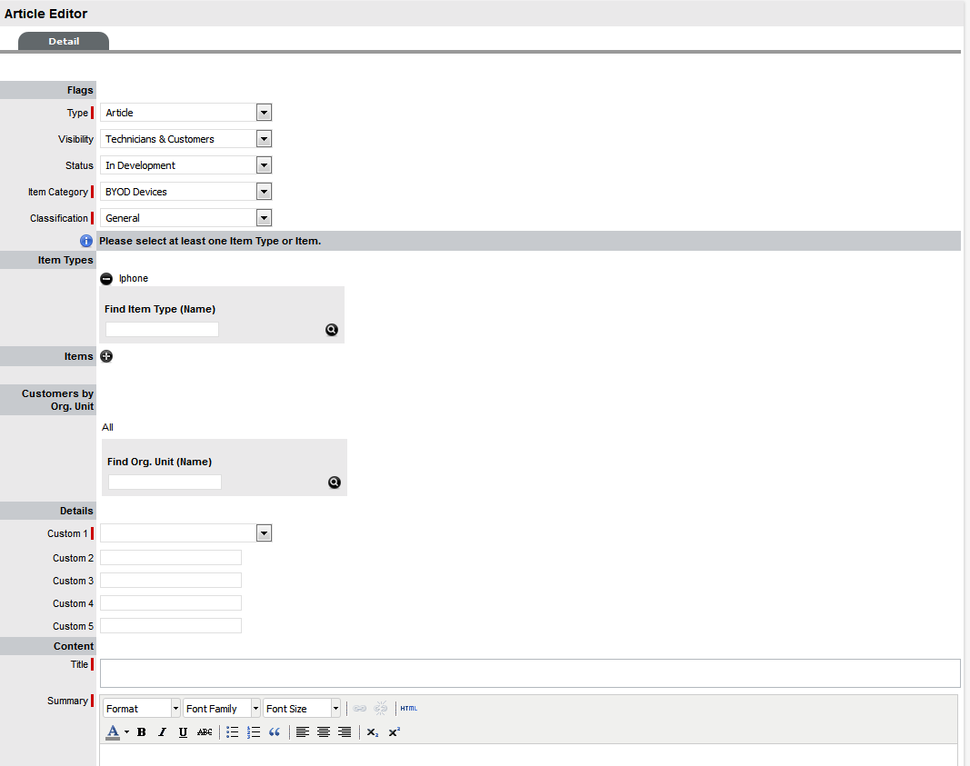 Requests generated as part of the KB content control process are managed like all other Requests in the system. This means, when a change is made to KB content, be it all new or edited material, a Request is created that must have an SLA assigned to it, to ensure a Workflow and Team manage the process efficiently.