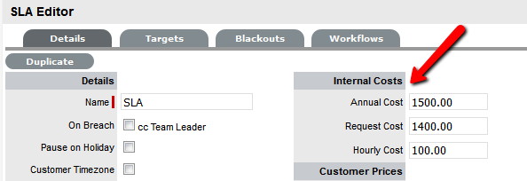 If the service and support organization is to charge Organizational Units, that is companies or departments, for the ongoing service they provide the costing functionality for the Service Level Agreements (SLAs) needs to be enabled, and the Prices for the different Agreements need to be assigned to each of the SLAs.