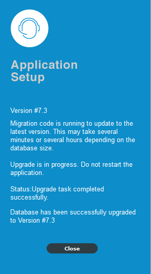 When the upgrade is complete, click Close. This will automatically save the upgrade task.