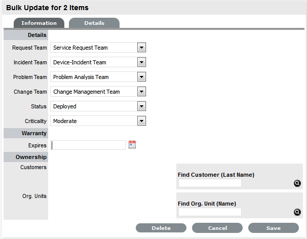 Service Portfolio Management in the system allows organizations to create Service Categories that include business-related attributes, such as business processes supported, business owners and business users. This ensures organizations record all relevant information against the Service.