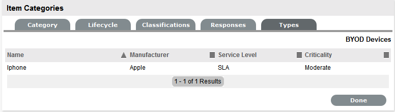 Within the Configuration > Types tab, create an Item Type using the Service Category.