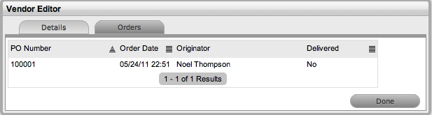 When a Supplier Vendor details are saved, an Orders tab is displayed. All Purchase Orders for the Supplier are listed within the Orders tab.