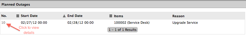 To view the Outage details, click the Outage No. link. To close the window, click Done.