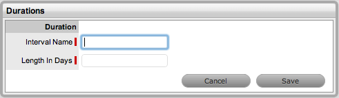 Or, click on the duration Interval Name to edit an existing duration. The individual Duration screen appears.