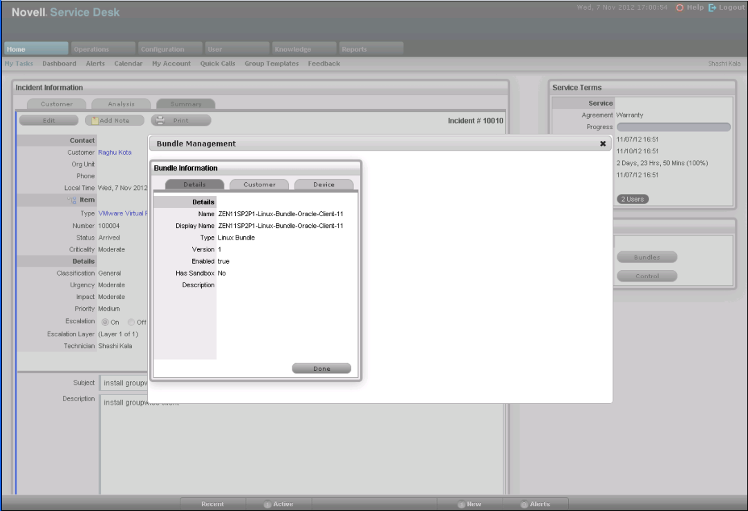 For example, selecting Device Bundles lists all the bundles that are assigned to the device for which the service request has been entered.
