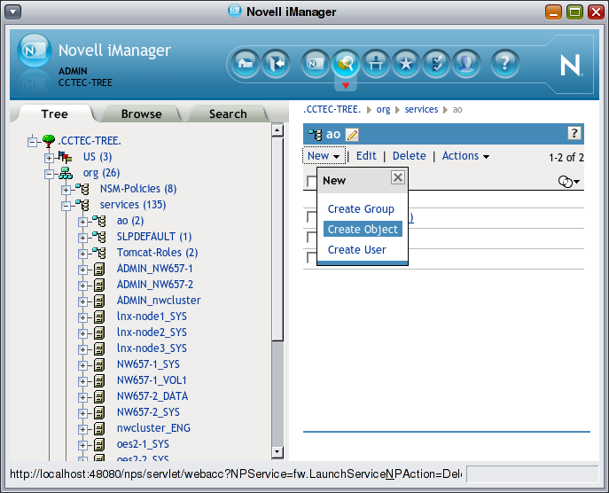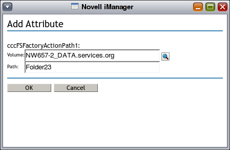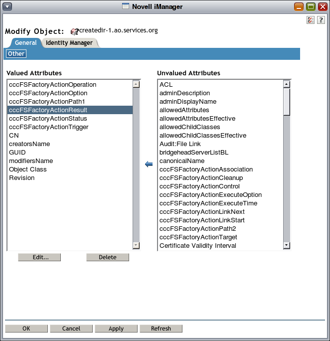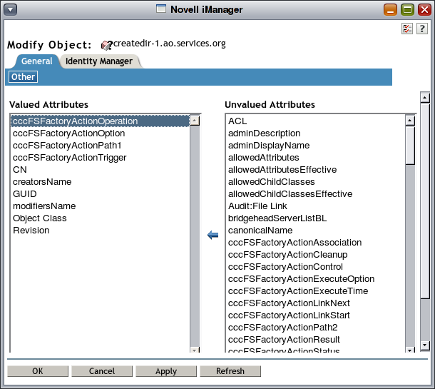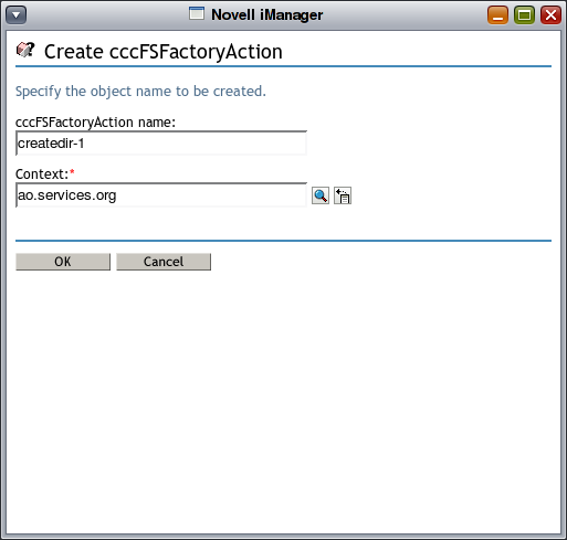 The following example illustrates how to create a CreateDir Action Object by using iManager.