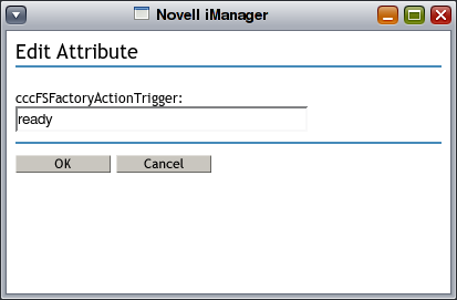 After all of the appropriate values for the action have been filled in, add the cccFSFactoryActionTrigger attribute, set it to a value of Ready, then click .