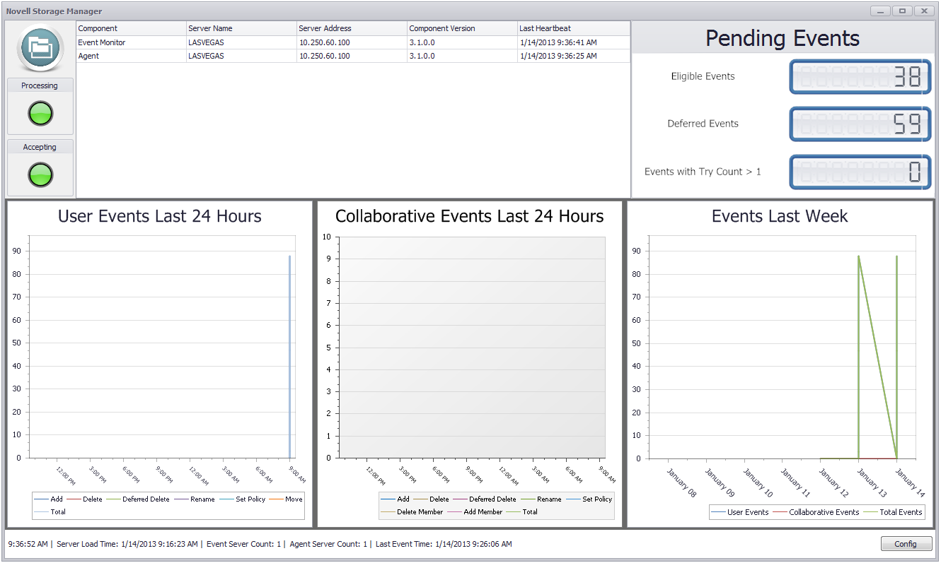 Accepting: Displays a green light if the NSM Engine is accepting events from the Event Monitor. A red light indicates the NSM Engine is not accepting events for processing.