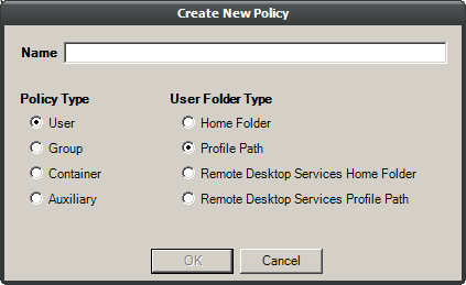 User Profile Path Options: The fields presented on the Policy Options page are identical to those presented when you create a user home folder policy. For an explanation of the page, along with procedures for setting policy options, see Section 5.5.1, Setting Policy Options.