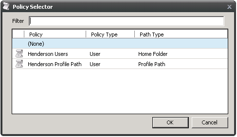 Filter: Filters policy names as you type.