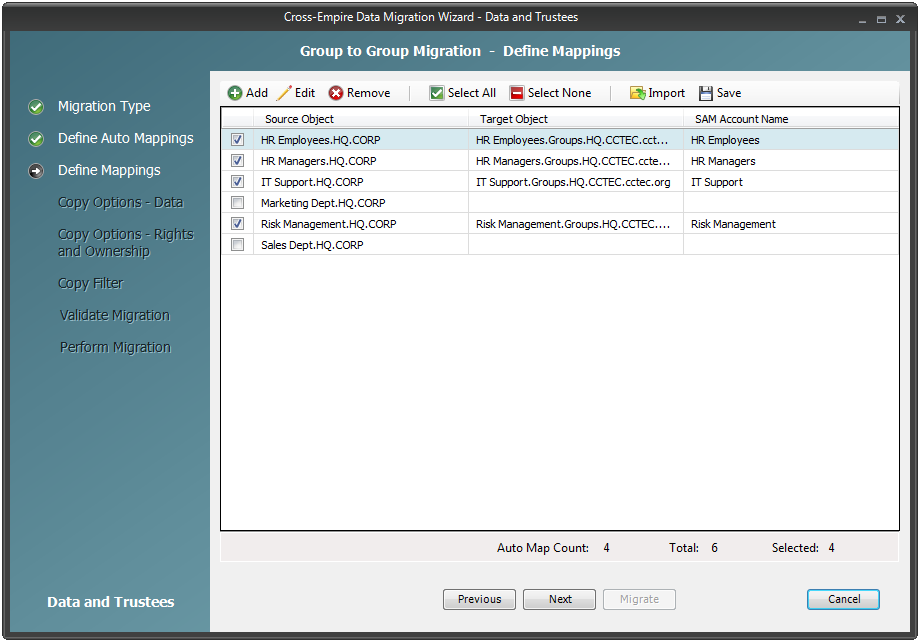 If you are migrating only a few groups, use the button in the next wizard page to add the groups individually.
