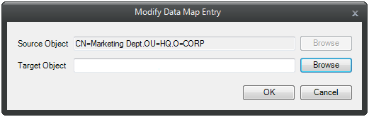 Specify a target object for each source object that is not automatically matched by double-clicking the name to bring up the Modify Data Map Entry dialog box.