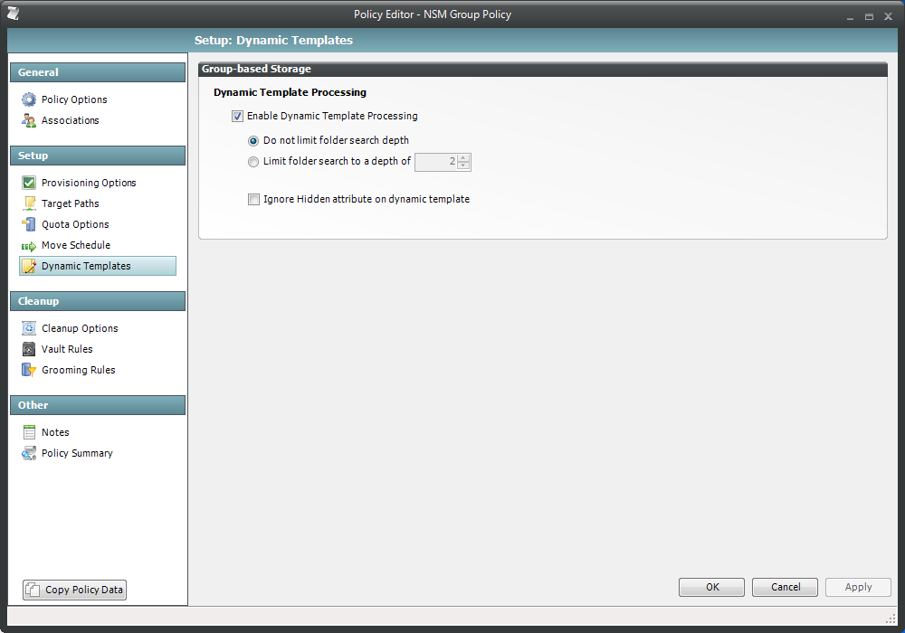 NOTE:Group policies in Novell Storage Manager are completely independent of Microsoft Group policies.