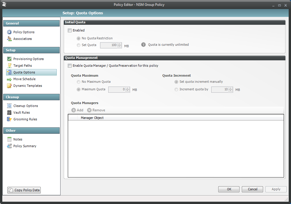 Proceed to Section 7.7.5, Setting Group Policy Quota Options.