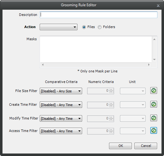 In the Grooming Rule Editor dialog box, indicate the files that Novell Storage Manager will groom from the collaborative storage pertaining to this policy.