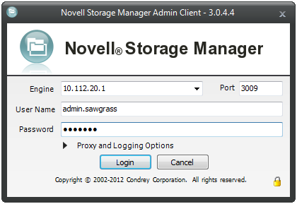You are notified that Novell Storage Manager needs to initialize its engine and susbsystems.