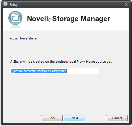 Accept the default path or indicate a new path for the proxy home share, then click .