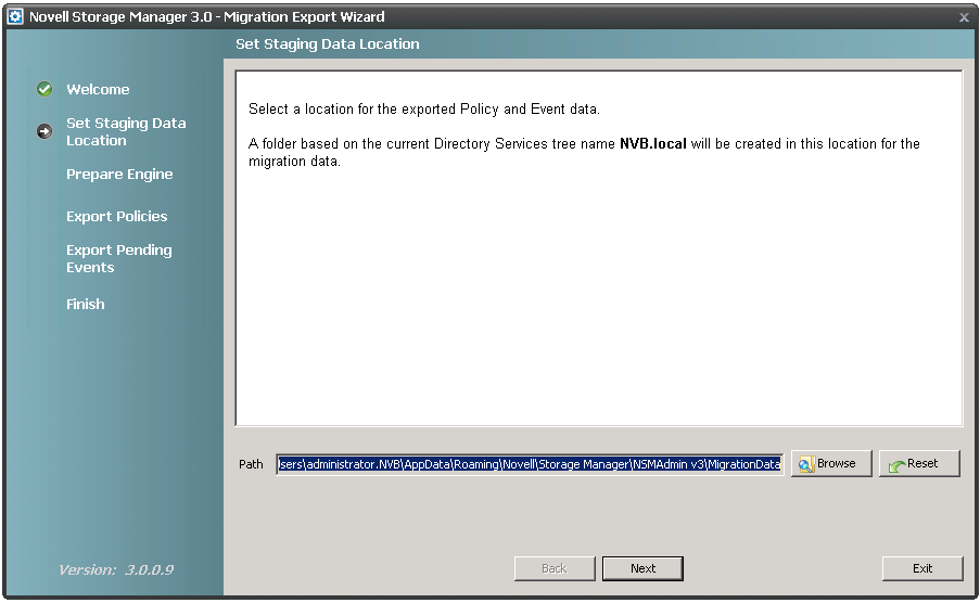 Unless you change the default path, the path appears automatically when you import the migration file through the NSMAdmin Setup Wizard.