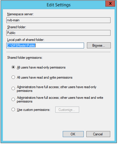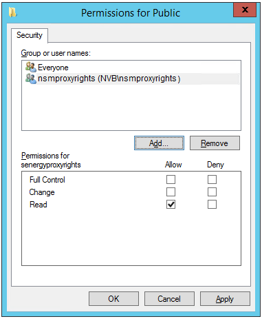 The Novell Storage Manager Proxy Rights Group (named NSMProxyRights by default) requires Full Control in the CIFS permissions on the root share of the DFS namespace.