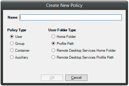In the Manage Policies menu, select Create Policy > Create User Profile Path Policy.