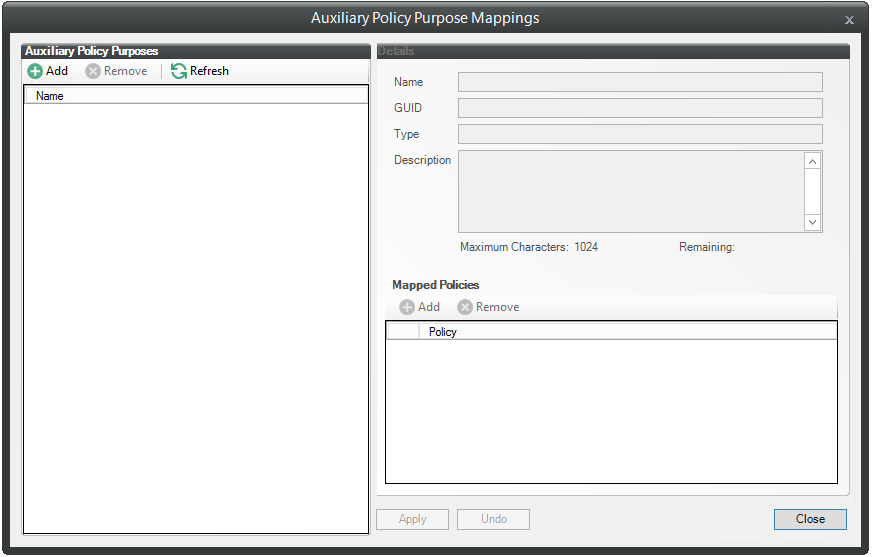 From the Manage Policies drop-down menu, select Auxiliary Purpose Mappings.