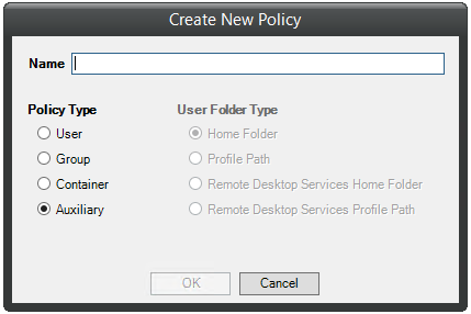 In the Manage Policies menu, select Create Policy > Create Auxiliary Policy.