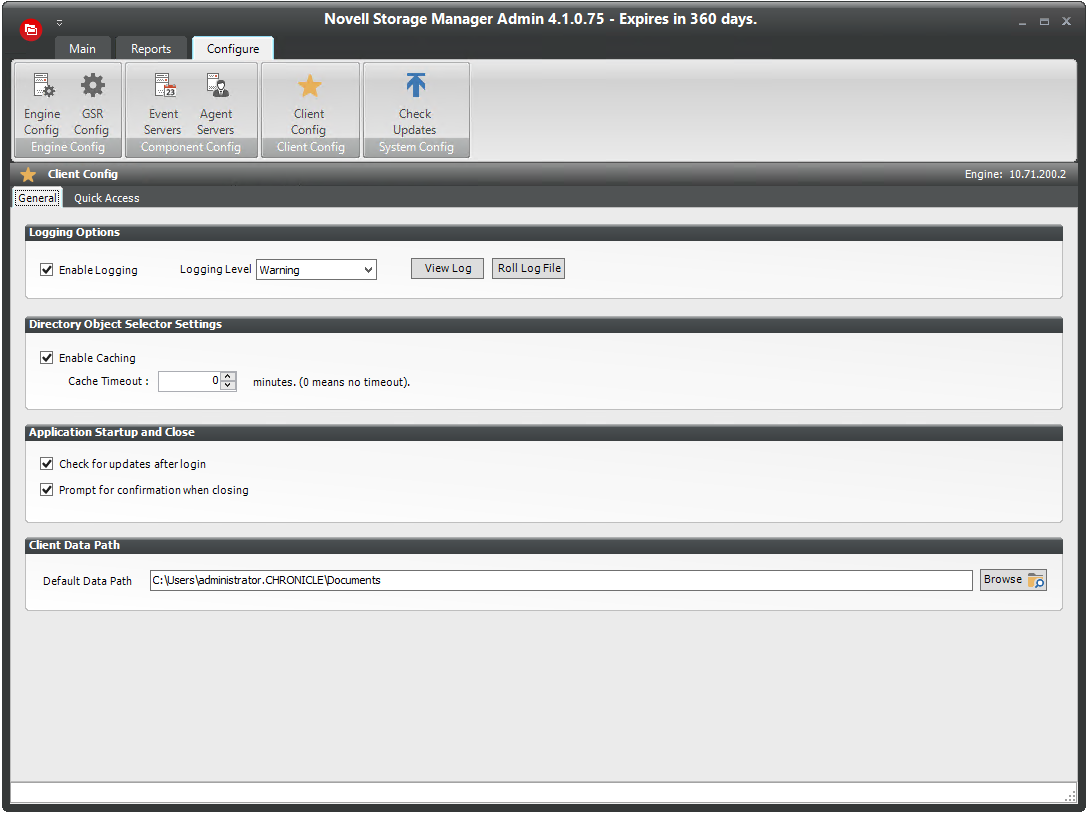 Check for Updates after Login: Selecting this check box allows NSMAdmin to notify you of the availability of newer Novell Storage Manager components.