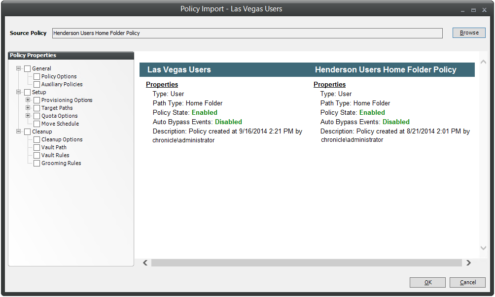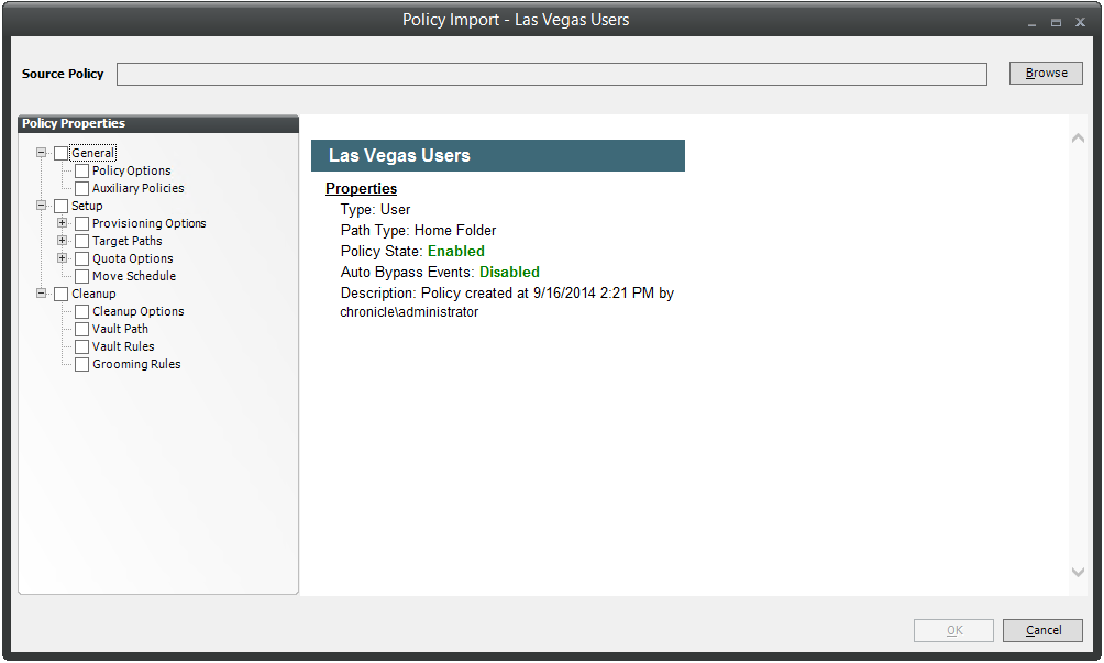 Click the Browse button. In the Policy Selector dialog box, select the policy from which you want to copy policy settings, then click OK.