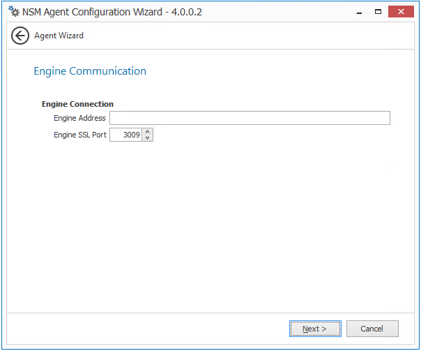 Engine Address: Specify the DNS name or IP address to the server hosting the Engine here.