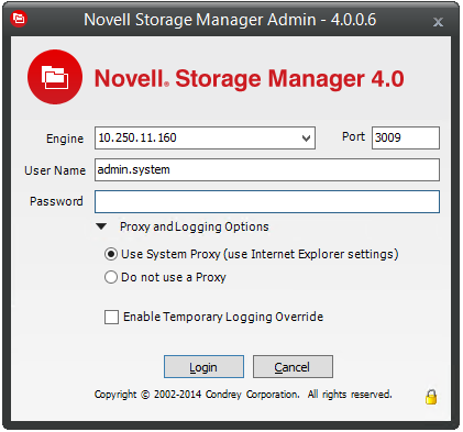 Selecting Enable Temporary Logging Override indicates that you want Novell Storage Manager to override any logging configuration settings you have set for the NSM Engine and the NSM Agent in NSMAdmin, and to create log files during this session. The data contained in the log files might be useful for troubleshooting.