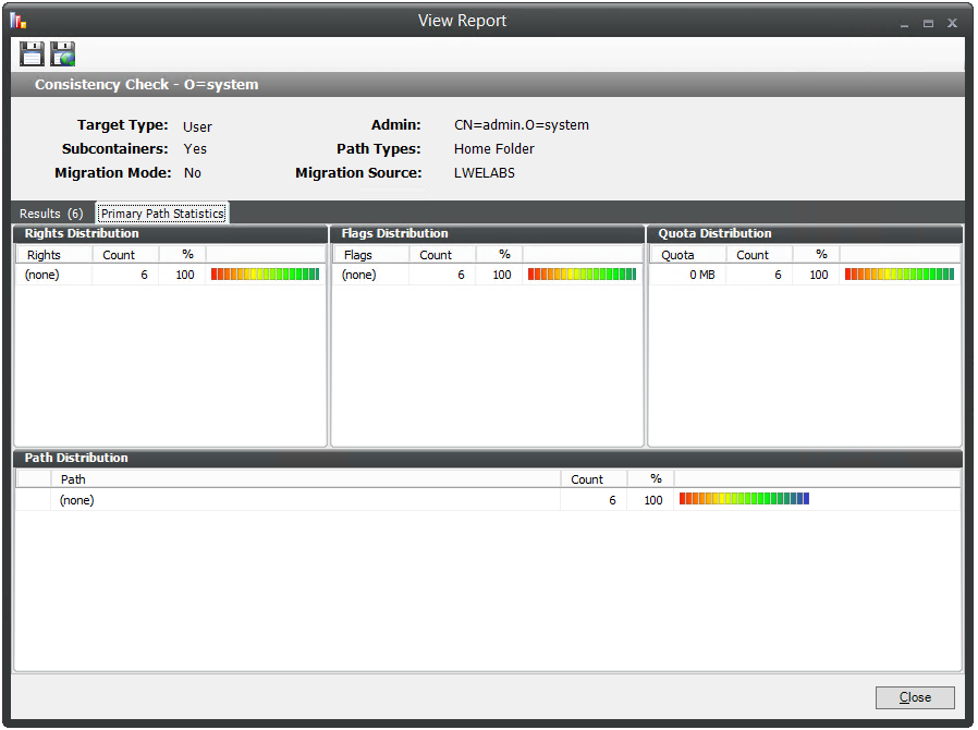 Figure 9-10 Primary Statistics in a Consistency Check Report