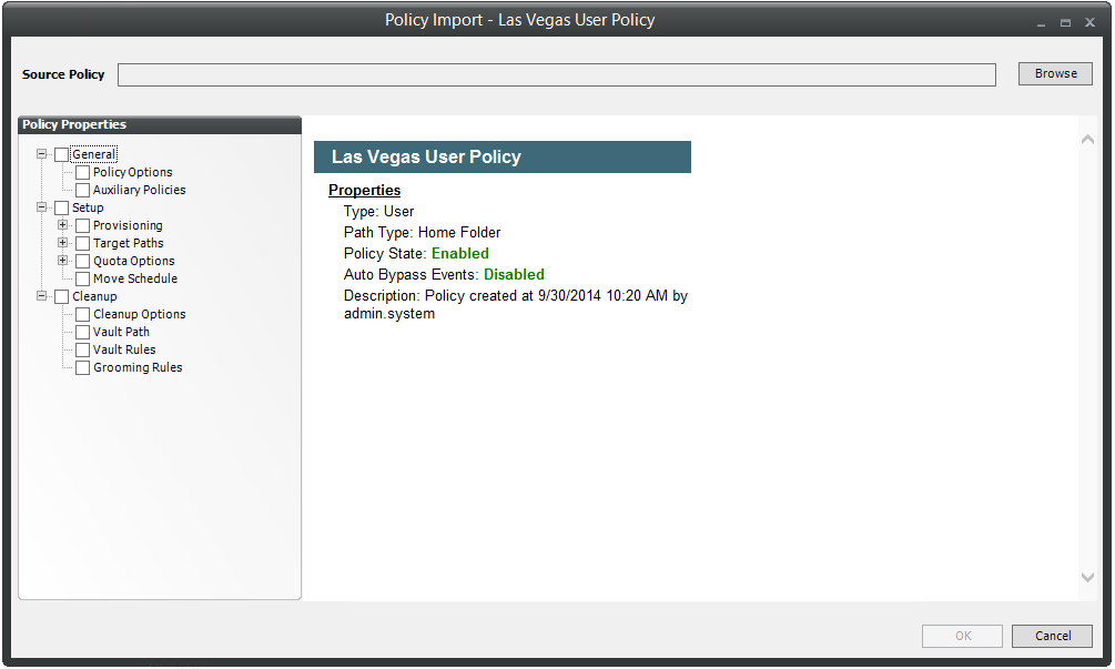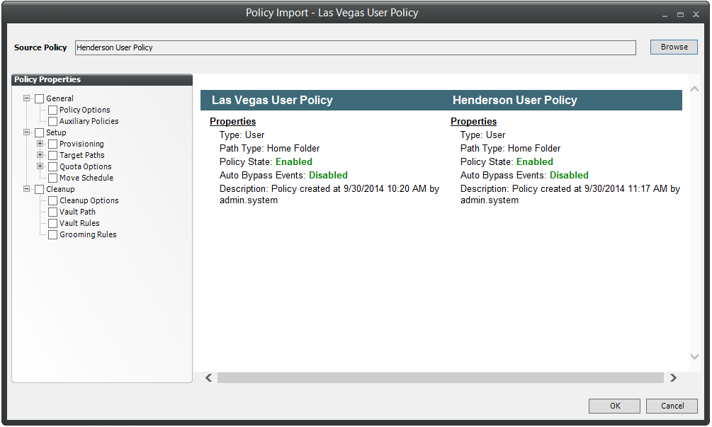 Copy Policy Data allows you to copy all or a portion of the policy settings of one policy into another policy.