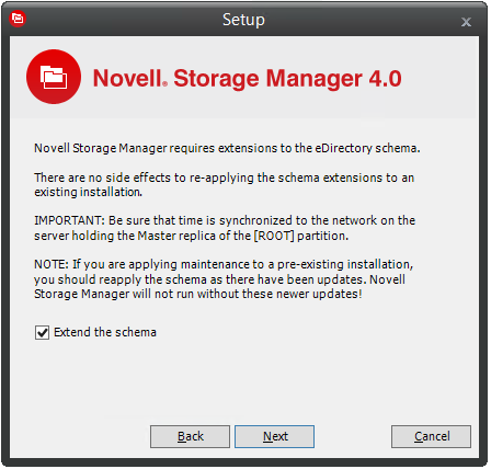 The following page appears, asking if you want to extend the Novell eDirectory schema.