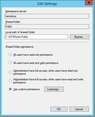 Select Use custom permissions, then click Customize.